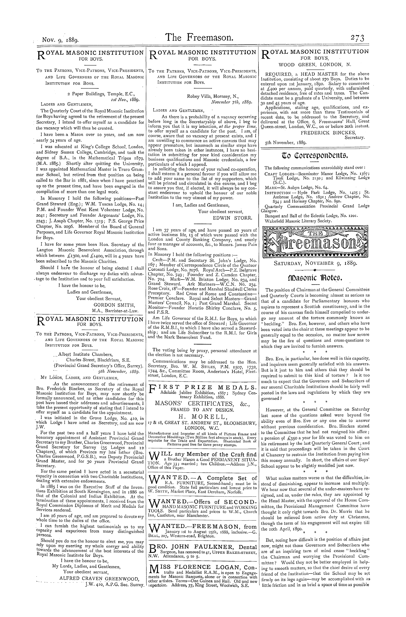 P . M . g 57 ; and 5 th , Bro . F . M . Noakes , J . D . 214 S . Third Lecture : ist Section , Bro . Dr . J . Powdrell , W . M . 2271 ; 2 nd , Bro . W . S . Lincoln , J . VV . 534 ; and 3 rd , Bro . J . Thorn , P . M . 2206 . On rising for the first time , the followin ? brethren were unanimously elected members of the lodire ' ¦ Bro . C . Sheppard , Gammon , Whitehead , J . Knight ,